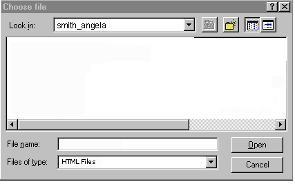 Instructions: The file folder, smith_angela, opens but no case files appear to be in the folder. Because you are accessing your file folders from the Internet, Windows defaults to displaying only HTML files. Note the Files of type window showing HTML Files. To see all of the files in this folder, CLICK